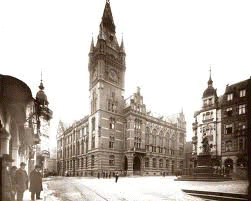 Essen ist eine Industriestadt im Zentrum des Ruhrgebietes (seinerzeit über 600.000 Einwohner), sie besteht aus einer Menge von Stadtteilen (ca. 50) und einer fast unbewohnten City - die im Krieg total zerbombt und deren übrig gebliebene repräsentablen Häuser wie das alte Rathaus (links) auch noch zugunsten von hässlichen unpersönlichen Waren-Häusern abgerissen wurden, um auch diese nach einigen Jahren wieder verschwinden zu lassen und durch noch hässlichere Betonburgen in 08/15-Architektur zu ersetzen: eine vorausschauende Stadtplanung ist nicht ersichtlich - es gibt hier so gut wie keine Verweilmöglichkeiten, keine Außengastronomie, keine Wohlfühloasen, keine gewachsene Struktur - nur Handel im Wandel. |